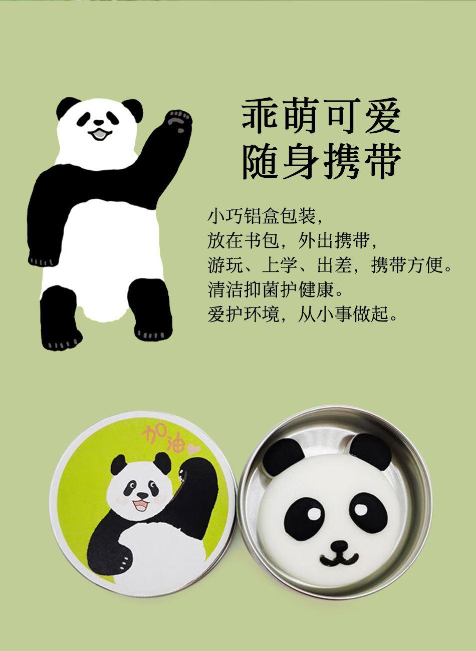 可愛的熊貓香皂,小巧鋁盒包裝,放在書包,外出攜帶。 清潔護健康,兩種圖案可選。