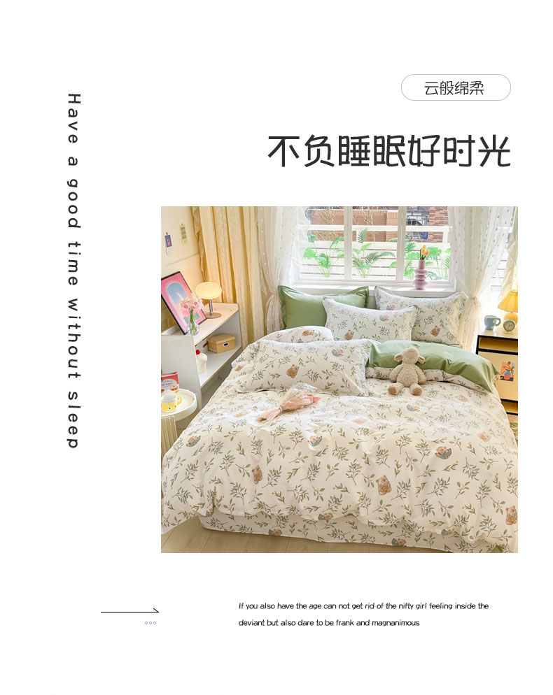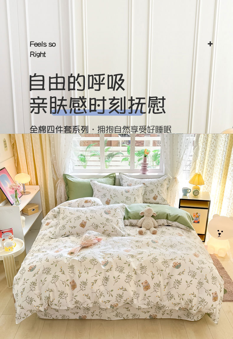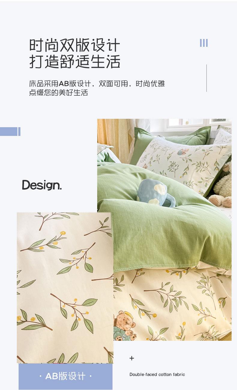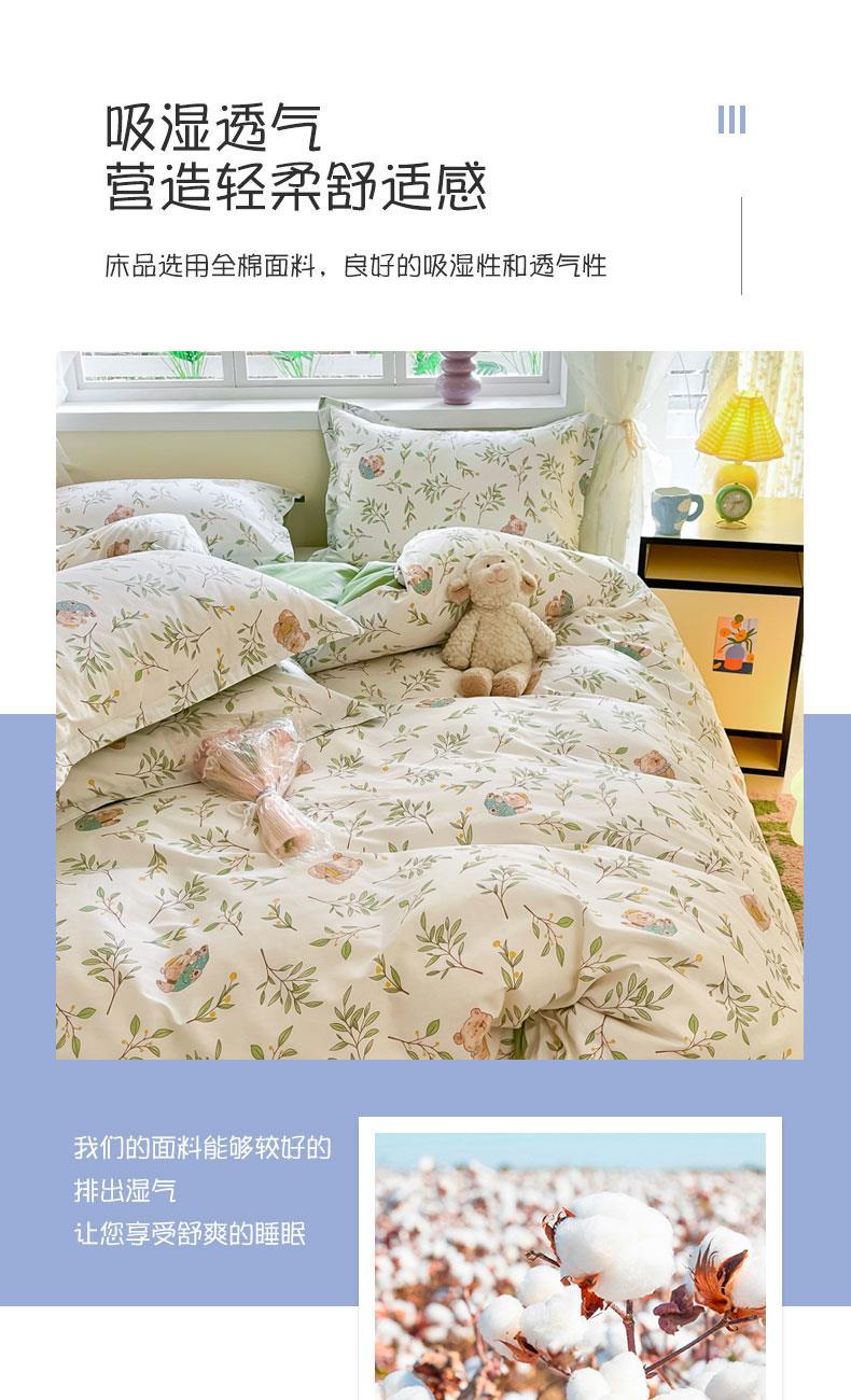 被套:200×230cm 床單:230×250cm 枕套:48×74cm 適用:1.5M-1.8M床 面料:棉 印染工藝:環保印花 風格:田園風格 包裝:手提禮盒 甄選全棉面料,純凈無刺激,柔軟親膚,AB版設計,舒適透氣,不易起球。